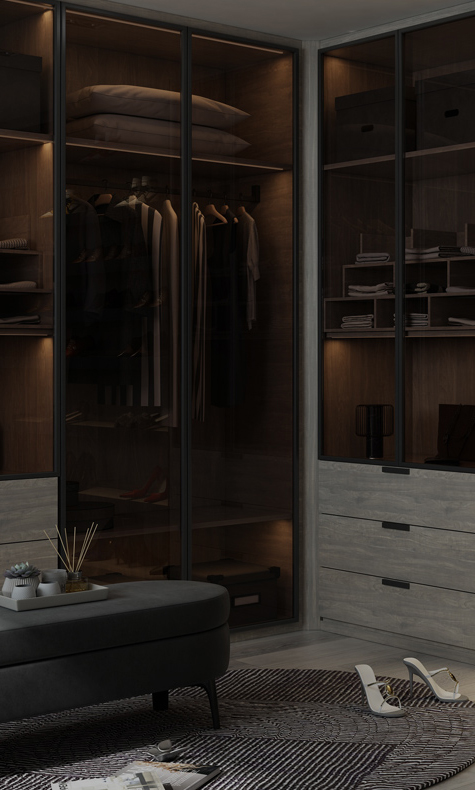 柏麗雅衣帽間系統:懸臂式衣帽間、柱式衣帽間,裝配式安裝方式,方便快捷。